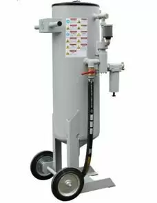 Пескоструйные аппараты серии DSG напорного типа производства Великолукского Механического Завода (ООО 'ВМЗ') предназначены для очистки металлических и железобетонных конструкций от коррозии, старой краски перед нанесением антикоррозионных покрытий. В качестве абразивного материала может использоваться любой сухой абразив фракцией до 2 мм, такой как песок, металлическая сечка, литая или колотая дробь и д.р. Для работы пескоструйного аппарата DSG-75 RC требуется сжатый воздух, очищенный от влаги и масла до 2-го класса по ГОСТ 17433-80, давлением 0,5-0,7 МПа и расходом 3-10 м3/мин, в зависимости от диаметра пескоструйного сопла. Резервуар пескоструйного аппарата, работающего под давлением, сварен из прочной стали с учетом всех требований безопасности.
